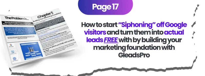 The reason why we're offering the book for only $19.95 ... is because our long-term plan is that you'll love the book & leverage our GLead'sPro Marketing tool that connects to your Google profile and allows you to siphon leads automatically without lifting a finger.